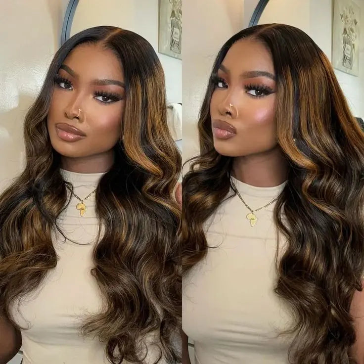 This Glueless Balayage Brown Highlight hair wig is designed for effortless beauty and versatility. Made from premium human hair, this hair wig features rich brown tones blended with subtle highlights for a natural, sun-kissed effect. The invisible knot lace front ensures a seamless, undetectable look, making styling easy and natural. With a glueless design, this hair wig provides a secure, comfortable fit without the need for adhesives, perfect for all-day wear.