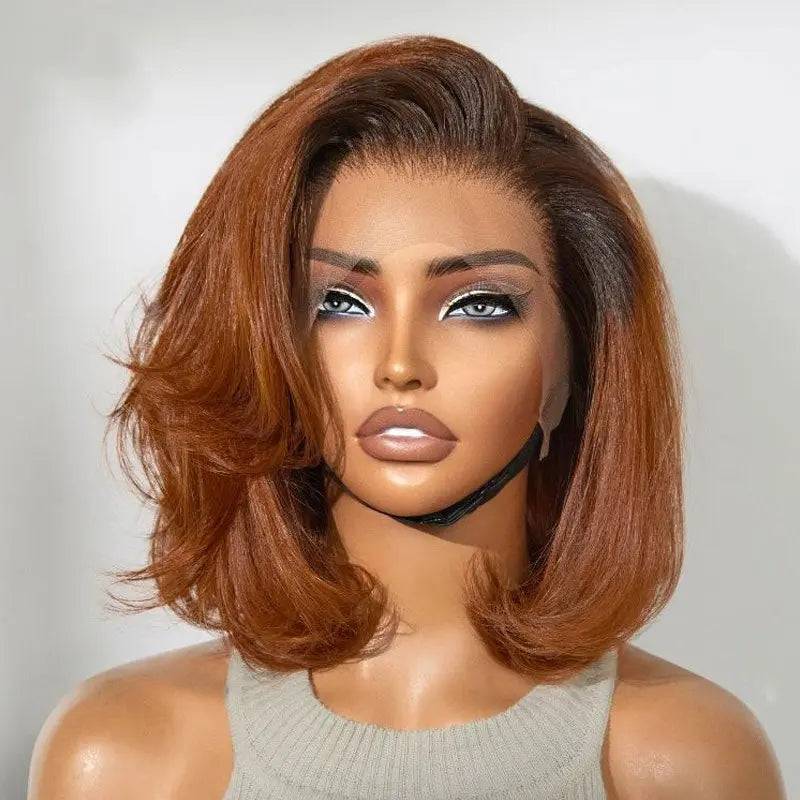 This ginger ombre bob wig is a chic and stylish choice for those who love a bold yet sophisticated look. Made from 100% Brazilian virgin hair, this bob wig features a sleek, straight texture with a rich ombre blend of ginger and brown for a natural, sun-kissed effect. The pre-plucked hairline ensures a seamless, realistic appearance, while the breathable cap offers comfort for all-day wear. Whether worn casually or for special occasions, this ginger ombre bob wig delivers effortless beauty and versatility.