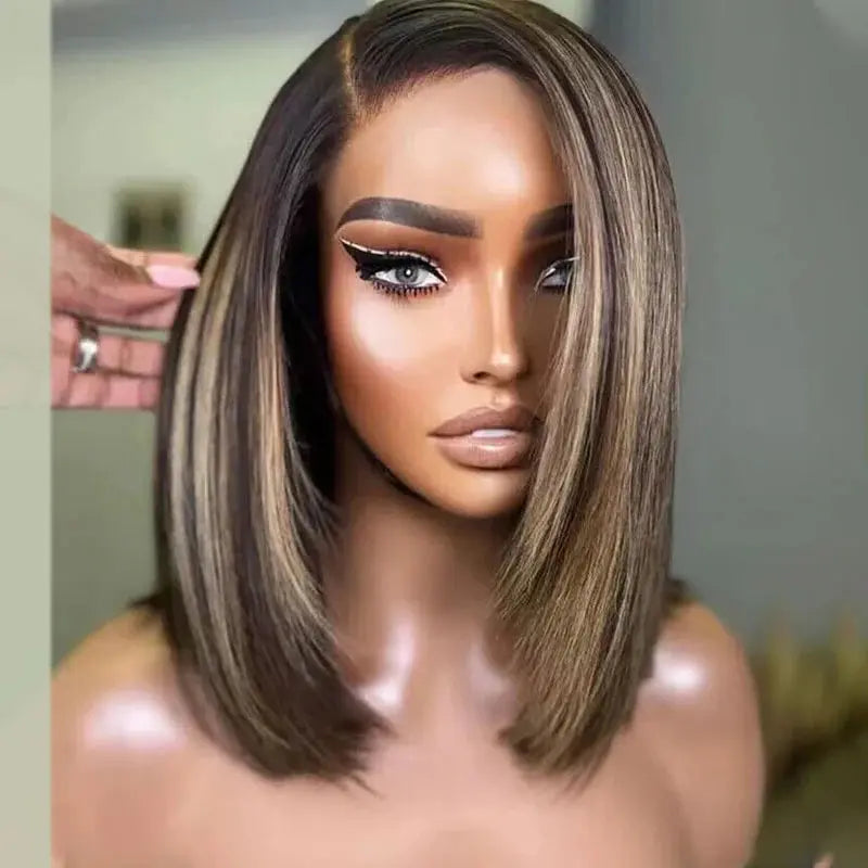 Glueless Side Part Highlight Straight Asymmetric P1B/27 Bob Lace Layer Cut Wig
