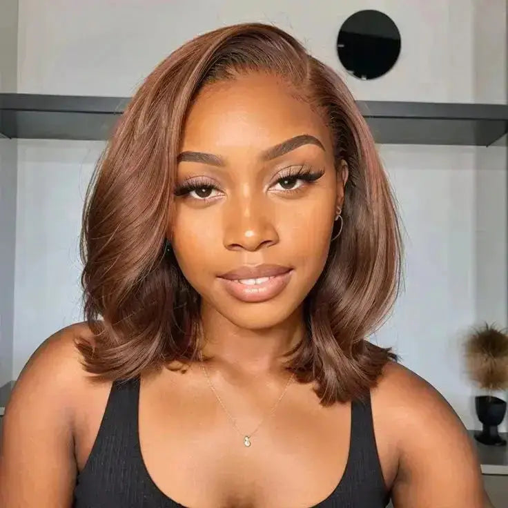 Short Hair Bob Chocolate Brown Pre Cut HD Side Part Lace Wig