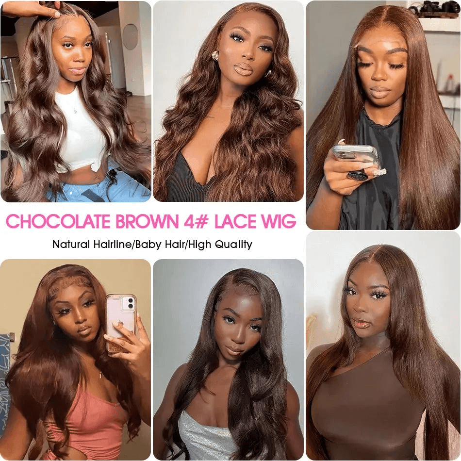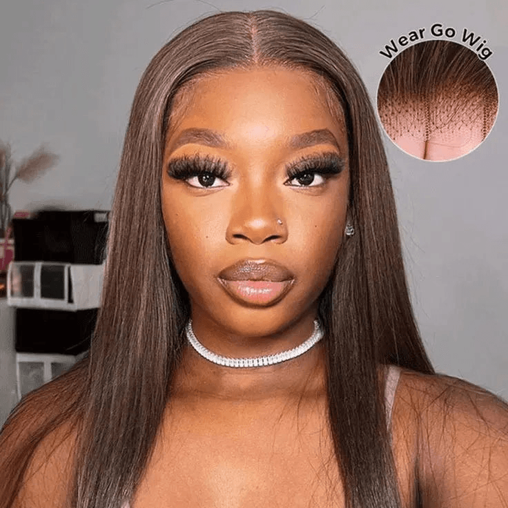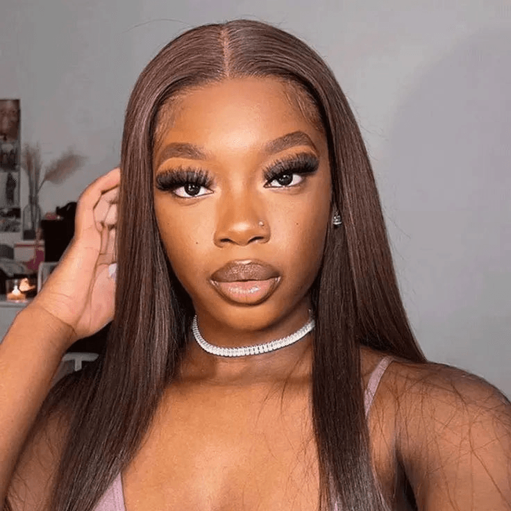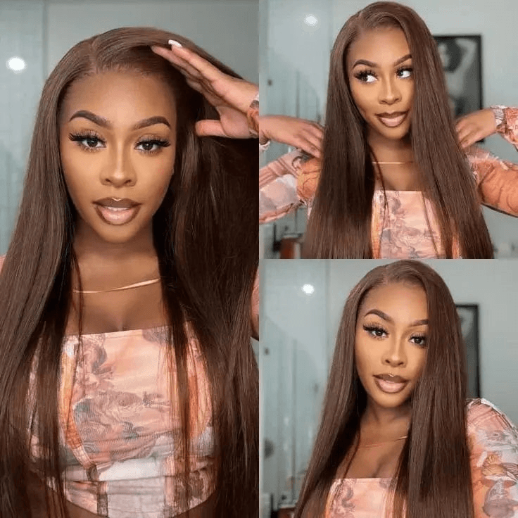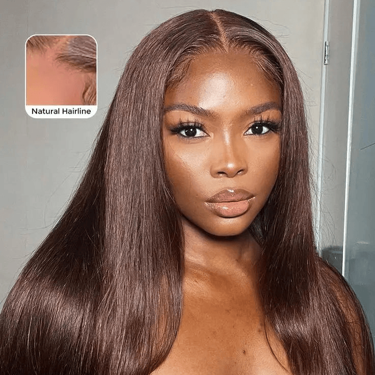 Glueless Chocolate Brown HD Straight Human Hair Closure Wig